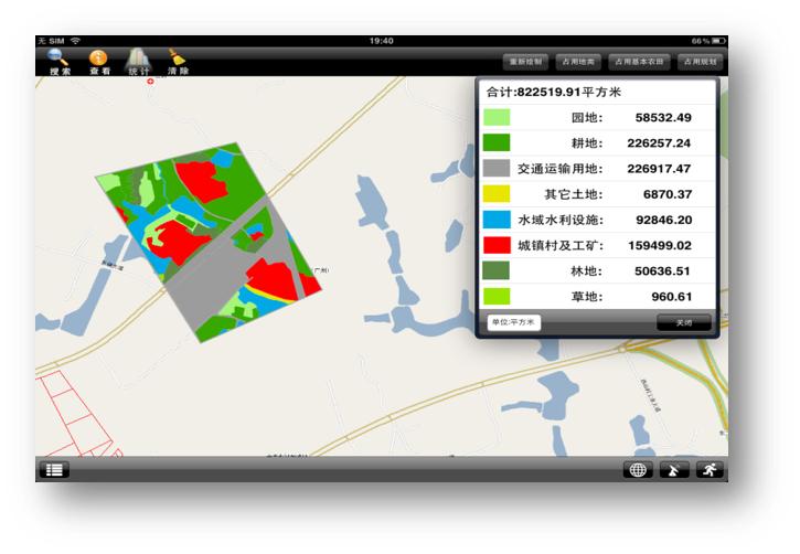 主要功能有用戶登錄(用戶驗(yàn)證、修改密碼、服務(wù)器設(shè)置),數(shù)據(jù)瀏覽(圖層控制、地圖瀏覽),搜索功能(地名地址搜索、土地規(guī)劃搜索、土地利用搜索、宗地權(quán)屬搜索、顯示搜索、定位搜索結(jié)果),屬性查看(查看簡(jiǎn)要信息、查看詳細(xì)信息),統(tǒng)計(jì)功能(繪制統(tǒng)計(jì)區(qū)域、土地利用現(xiàn)狀統(tǒng)計(jì)、基本農(nóng)田統(tǒng)計(jì)、土地利用規(guī)劃統(tǒng)計(jì)、宗地權(quán)屬統(tǒng)計(jì)),測(cè)量工具,清除工具,GPS定位,系統(tǒng)幫助,后臺(tái)管理(地圖配置、組管理、用戶管理、日志管理)等。